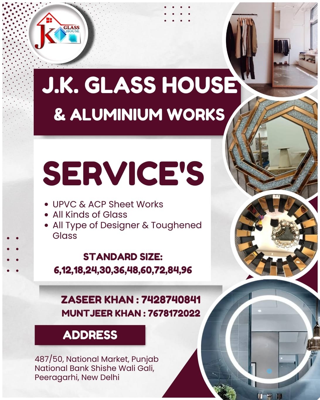 JK Glass House is a trusted name in glass solutions, conveniently located in Peeragarhi, Delhi. We specialize in high-quality glass products and customized installations for residential, commercial, and retail spaces. With years of experience and a skilled team, we deliver durable, stylish, and precision-finished glass work that meets modern design and safety standards. Our offerings include toughened glass, window and door glass, glass partitions, shower enclosures, mirrors, railings, and customized glass solutions tailored to client requirements. At JK Glass House, we focus on quality materials, timely service, and customer satisfaction, making us a reliable choice for all types of glass work in West Delhi and nearby areas.